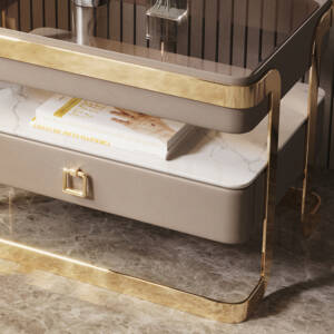 الخامات الرئيسية : مصنوعة من الخشب الهندسي المتين مع القاعدة من الستيل المذهب الصلب المقاوم للصدأ