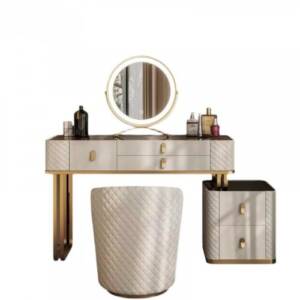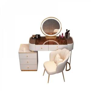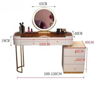 تسريحة مودرن مرايا من مكانك قطعة مختلفة كليًا كما تحب أن تقتني في غرفة نومك، فمساحة التخزين كبيرة والسطح زجاج ملون سهل في ترتيب منتجات التجميل والعناية، والألوان راقية أبيض مع لمسات ذهبية لمظهر ولا أروع في غرفتك بمرايا ليد مميزة.