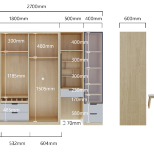 - المقاسات : الارتفاع (سم) :210، العمق (سم) :60، العرض (سم) :270.