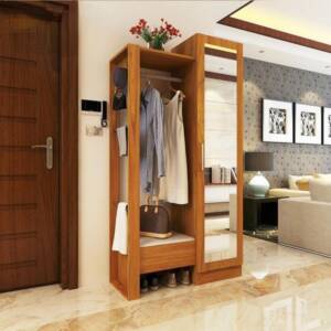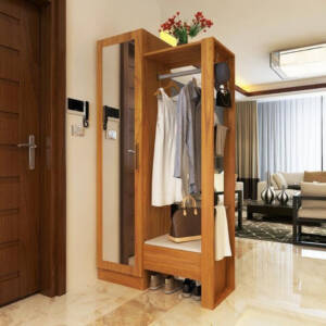- ومو بس كذا الخزانة تجي بمساحة لتعليق الملابس الطويلة والمعاطف بشكل خارجي لسهولة الوصول إليه.