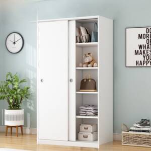دولاب صغير للملابس كلاسيكي مناسب لأي غرفة نوم سواء للبنات أو الأولاد أو حتى غرف نوم الضيوف، مو بس كذا التصميم جرار للمساحات المحدودة والزوايا المحدودة لتناسب أي مكان، اللون كلاسيكي يناسب أبيض مع خشبي بقياسات مناسبة لأي مكان.