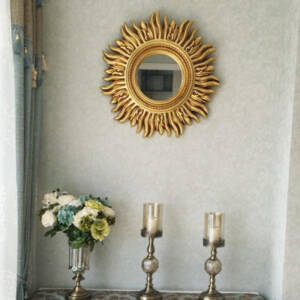 - وتأتي المرآة بإطار دائري أنيق مزين بزخارف بارزة تحاكي أشعة الشمس ما يجعلها قطعة ديكورية لافتة تخطف الأنظار وتضفي لمسة ملكية على أي مساحة توضع بها.