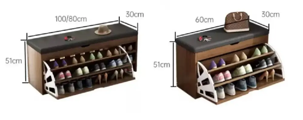 الخزانة مصممة لتخدم أكثر من غرض: ترتيب الأحذية بشكل مرتب، وتقليل الزحمة عند الباب، مع توفير مكان جلوس يريحك قبل الخروج. ستلاحظ فرقًا واضحًا في ترتيب المدخل خصوصًا في الأيام المزدحمة أو عند وجود ضيوف.