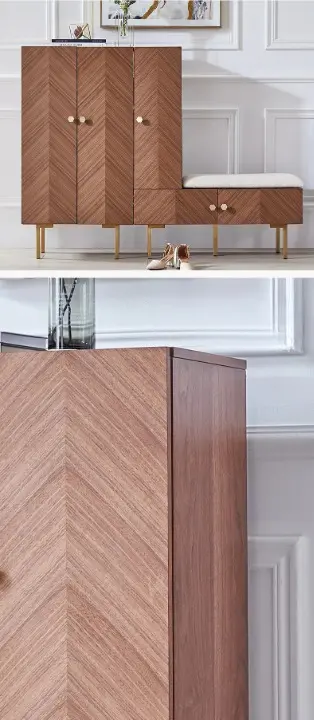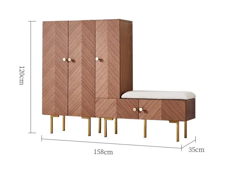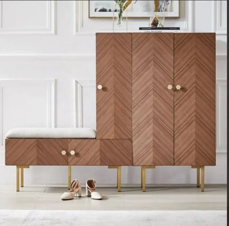الفرق الحقيقي هنا هو الجلسة الجانبية المنجدة؛ لأنها تختصر عليك وقت “الوقوف والبحث” خصوصًا وقت الاستعجال قبل الدوام أو المدرسة. التنجيد يجمع بين الجلد والأقمشة ليعطيك ملمس مريح ومظهر مرتب عند المدخل، ويخلي تبديل الأحذية أسهل للكبار والصغار.