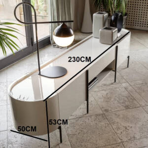 - مقاس الطاولة: الارتفاع: 53 سم، العمق: 50 سم، العرض: 230 سم.