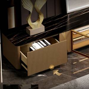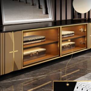 الخامات الرئيسية : مصنوعة من الخشب الهندسي المتين مع الستيل المذهب الصلب المقاوم للصدأ ويتخمل لاعلي درجة مع الزجاج المقاوم للشروخ