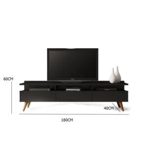 - أما اللون الأسود مع الأرجل البنية الخبية تجعلها طاولة تلفزيون سهلة التنسيق مع مختلف الأنماط.