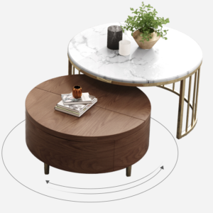 - الطاولات ممتازة للمساحات الحديثة بفضل تصميمها العملي والحجم المدروس لكل قطعة.
