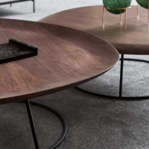 - الطقم يتضمن طاولتين قهوة منفصلين يمكن وضعهم بشكل متداخل حيث يوجد واحدة أعلى من الأخرى لمظهر مثل المعارض.