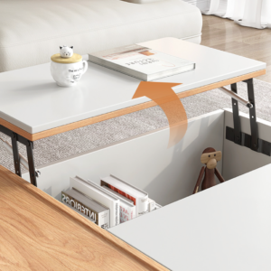 طاولة متعددة الوظائف مع سطح متحرك تصميم Senya ، من الألواح الخشبية MDF ،سطح ذو مساحة كبيرة ، تخزين منظم ، أرجل طاولة خشبية صلبة شكل دائري ، إطار رفع هوائي معدن عالي الجودة ، تحتوي على نمطيين نمط طاولة القهوة مغلقة بالكامل ، او نمط المكتب حالة نصف مفتوحة تتحول إلى مكتب قم بعملك دون الانحناء