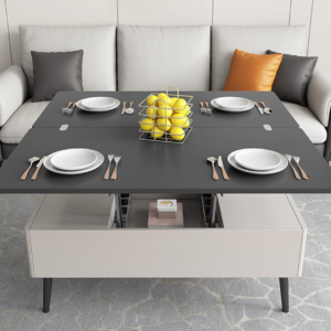 طاولة متعددة الوظائف مع سطح متحرك تصميم Senya ، من الألواح الخشبية MDF ،سطح ذو مساحة كبيرة ، تخزين منظم ، عجلة دوارة قابلة للقفل ، أرجل معدنية ، يمكن فتح سطح الطاولة بسهولة عن طريق الرفع برفق ، لتتحول الى ثلاث انماط ، نمط طاولة القهوة مغلقة بالكامل ، او نمط المكتب حالة نصف مفتوحة تتحول إلى مكتب قم بعملك دون الانحناء ، او نمط طاولة الطعام الحالة المفتوحة بالكامل تتحول إلى طاولة طعام تتسع لـ 8 أشخاص معًا دون ازدحام