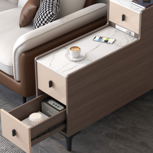الخامات الرئيسية : مصنوعة من الخشب الهندسي المتين مع قاعدة من الفولاذ المقاوم للصدأ مع رف رخامي لامع مقاوم للخدوش