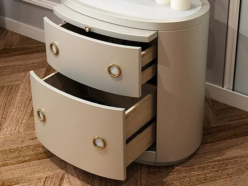 ميزة الطاولة الأساسية هي الأدراج الواسعة التي تساعدك على إبقاء المساحة مرتبة طوال الوقت. بدل تكدّس الأغراض فوق السطح، يمكنك توزيعها داخل الأدراج بشكل مريح: أدوات صغيرة، إكسسوارات، أوراق، أو أي مستلزمات تحتاجها بشكل متكرر. هذا النوع من التخزين يخفف الفوضى ويجعل غرفة المعيشة أهدأ بصريًا وأكثر ترتيبًا.