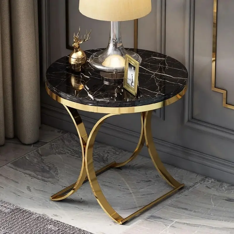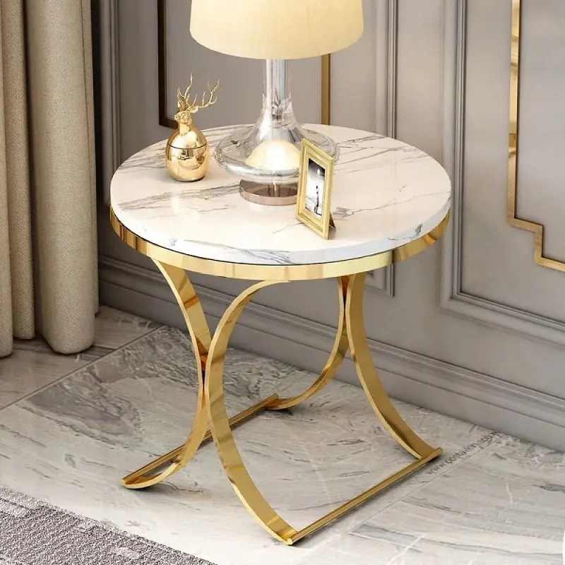 الهيكل مصنوع من خامة معدنية عالية الجودة تمنح الطاولة ثباتًا واعتمادًا طويل الأمد في الاستخدام اليومي. السطح العلوي رخامي عالي الجودة، سهل التنظيف ويقاوم الاستخدام المتكرر، مما يجعل الطاولة مناسبة لوضع الأكواب، الكتب، أو الإكسسوارات دون قلق. هذا التوازن بين المتانة والشكل الجذاب يجعل القطعة عملية ومريحة في الحياة اليومية.