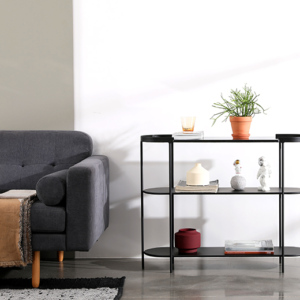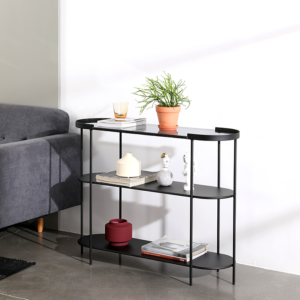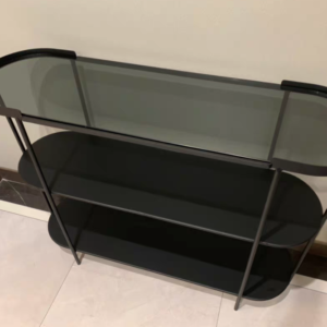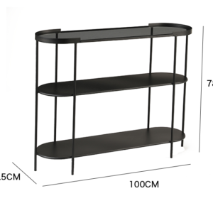 يمكن لهذه الطاولة أن تكمل ديكورك من خلال توفير مساحة عرض رائعة للتذكارات والكماليات الزخرفية في منزلك ، مصنوعه من المعدن بسطح زجاجي كما يحتوي على مستويات من الأرفف الأنيقة للتخزين والعرض مما يوفر لك مساحة كبيرة للتباهي بالجوائز والصور .